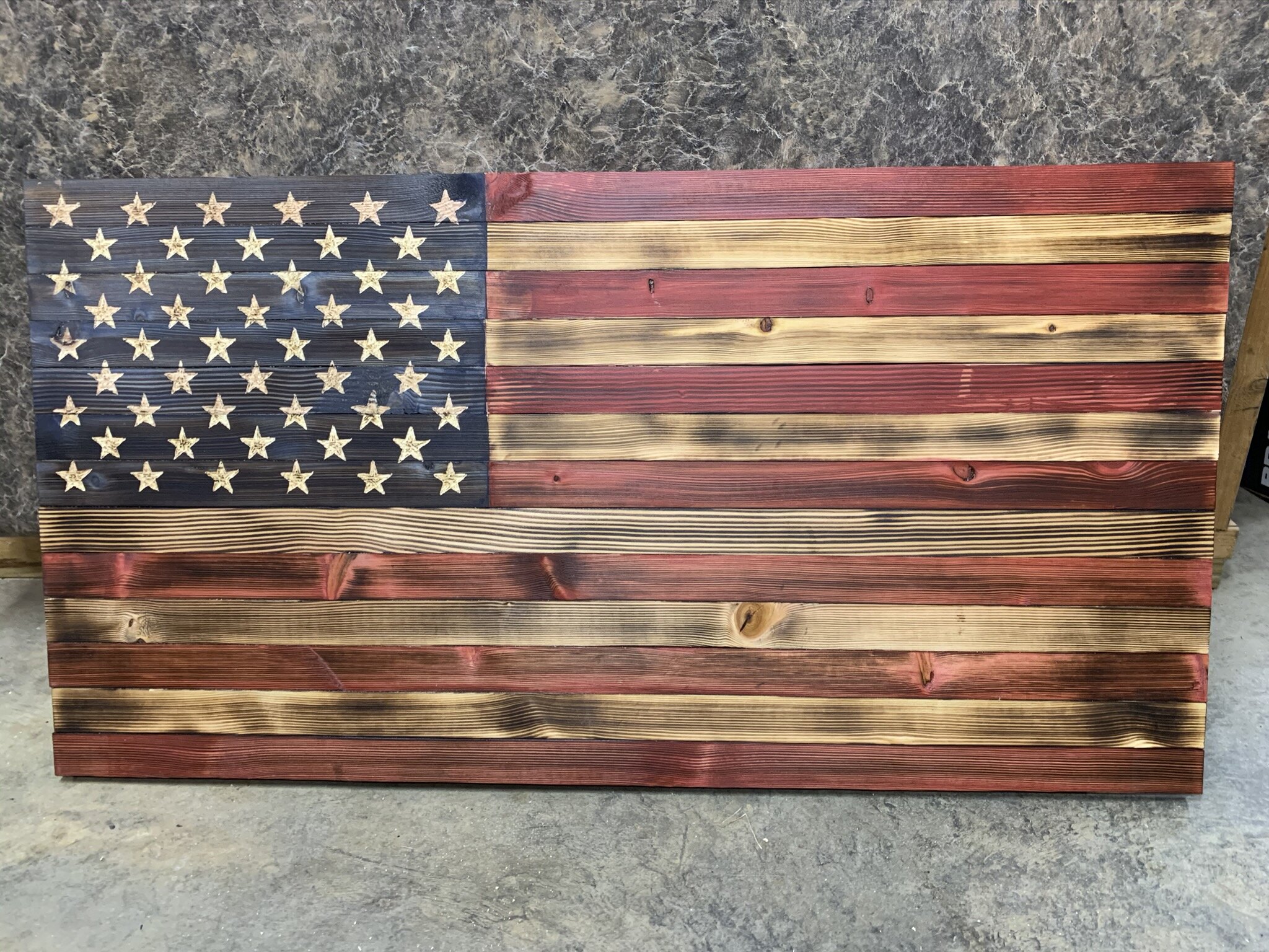 Rustic American Flag - Hand Carved Stars