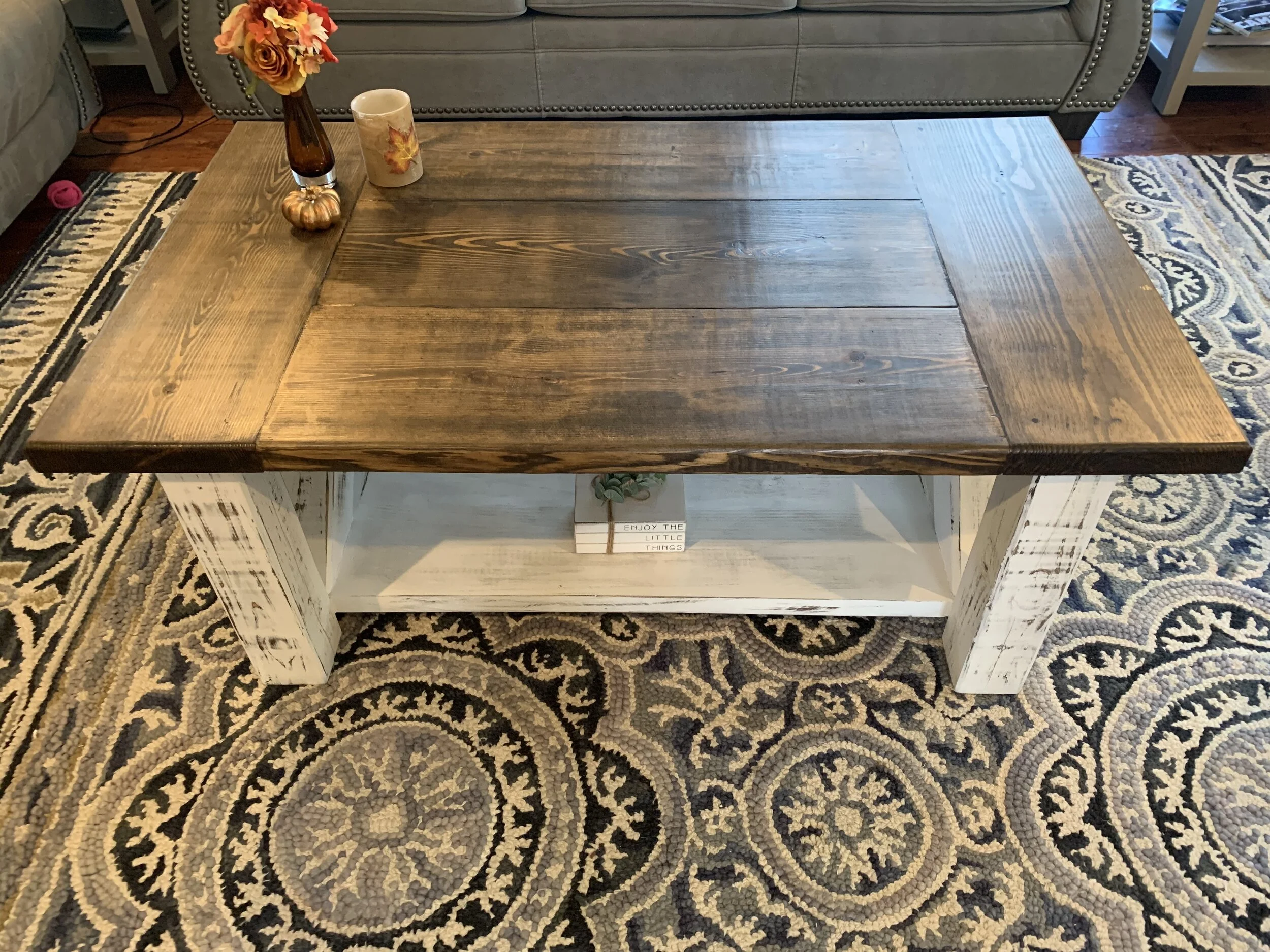 Farmhouse Coffee Table - Pine top and Antique/Distressed Bottom