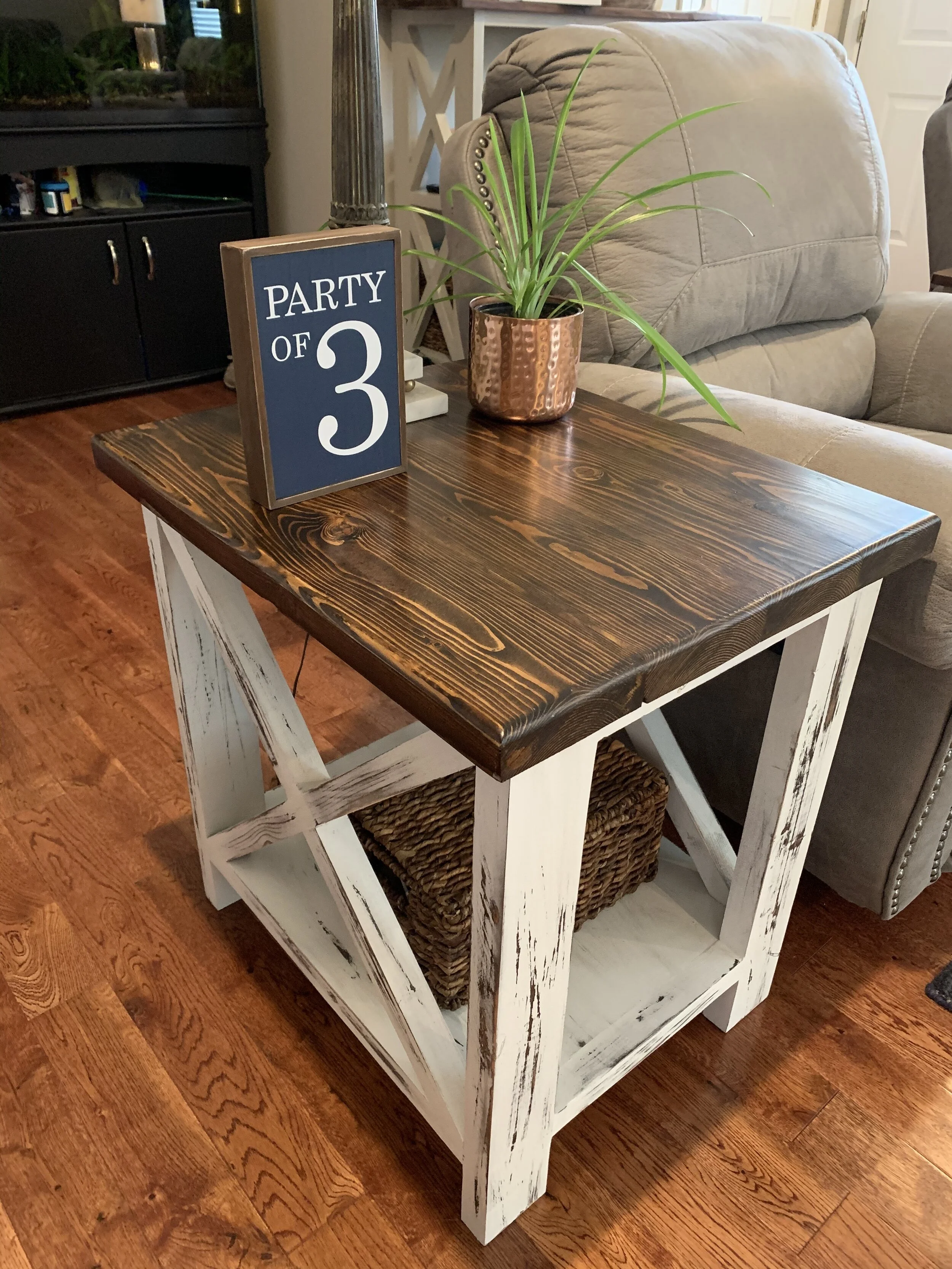 Farmhouse End Table - Pine top and Antique/Distressed Base